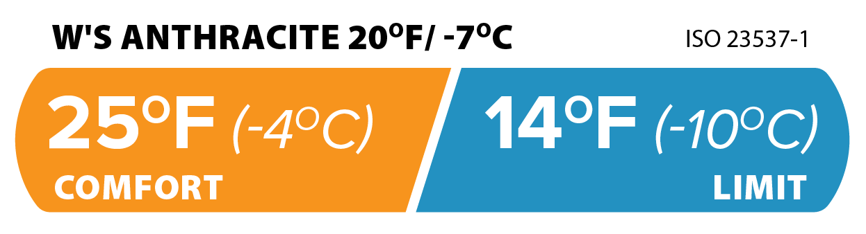 Our Women's Anthracite 20° traditional mummy-style sleeping bag is designed to be taken anywhere and provide rest after a long day outside. Stay cozy with FireLine™ Pro Eco recycled synthetic insulation and stay dry with recycled shell and lining fabrics featuring a moisture repellent coating without intentionally added PFAS. Lightweight enough to stuff in your pack for summer backpacking but comfortable enough for backyard campouts with the kids, this bag is so versatile and comfortable you’ll want to take it on every outing!